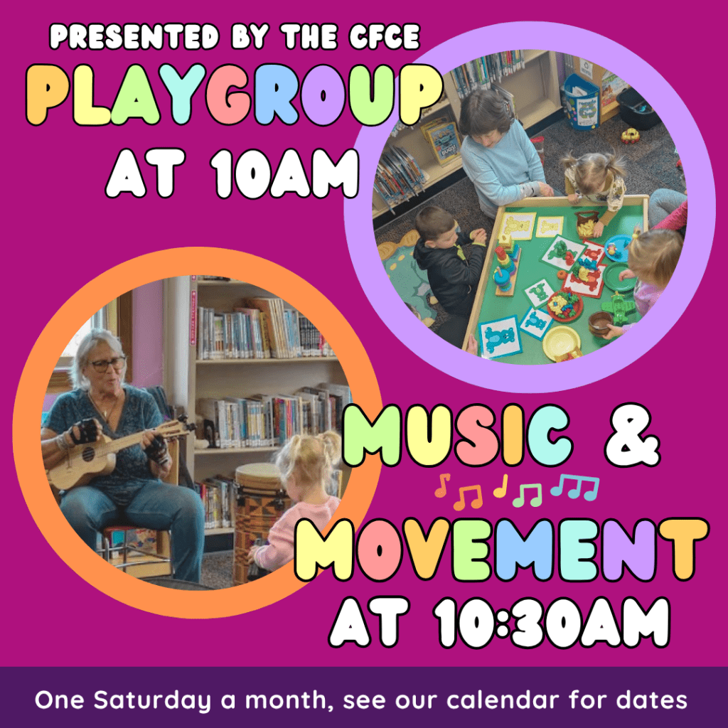 One Saturday a month Marti will start us off with Playgroup at 10am, and Janet will join us for music and movement at 10:30!