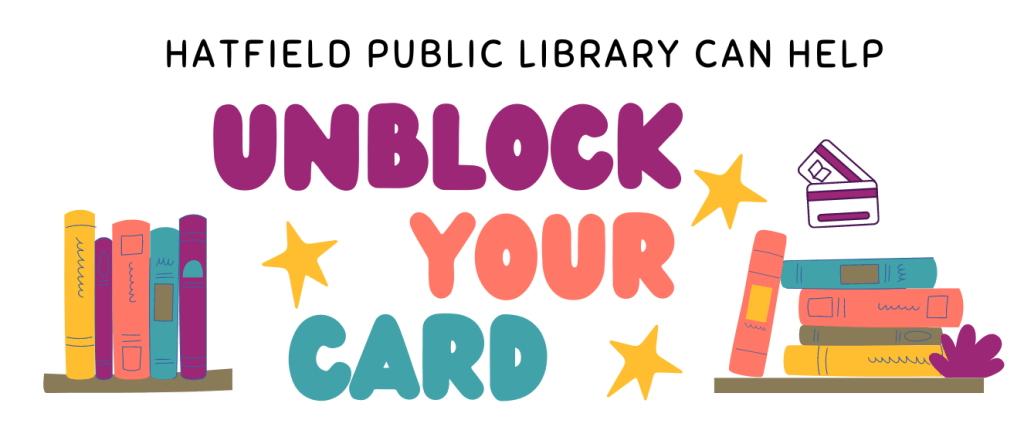 Even if it’s been a really really long time, just by returning overdue items to Hatfield Public Library your account will be cleared. Plus, we’re a fine free library, so any fines will also go away as soon as we check them in!